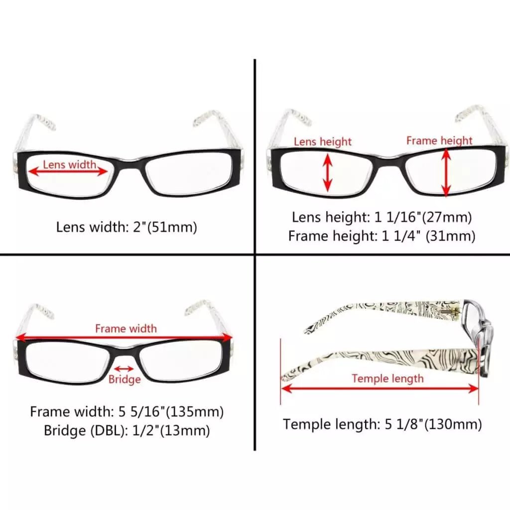 - Lengte van de tempel: ongeveer 5 1/8 inch (130 mm)